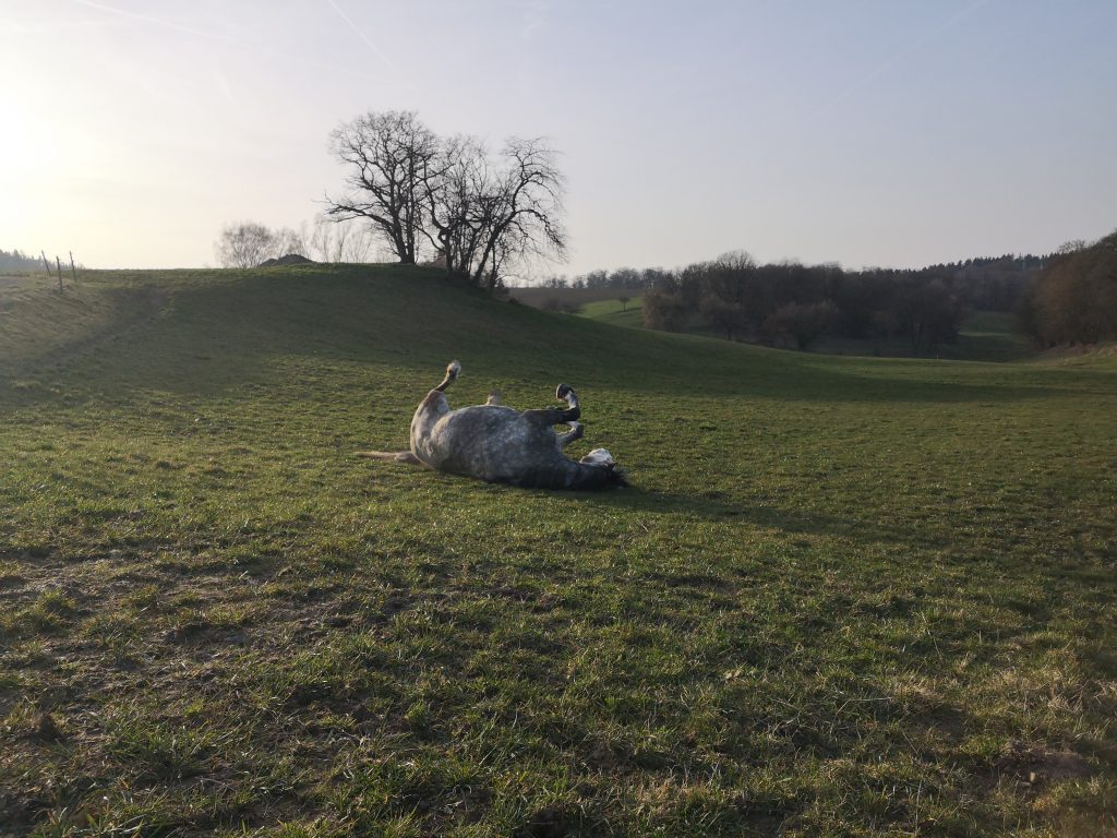 Eine Koppel fast ganz für sich allein. Mit mir musste er sie teilen. In der Abendsonne wälzen.