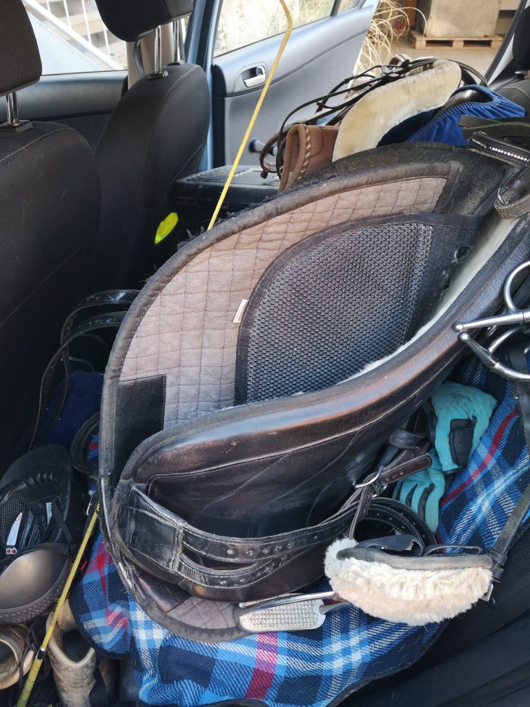 - Dann gehts in den Stall. Das Auto ist voll gepackt. Wir starten heute den Ausritt direkt von der Koppel aus.
