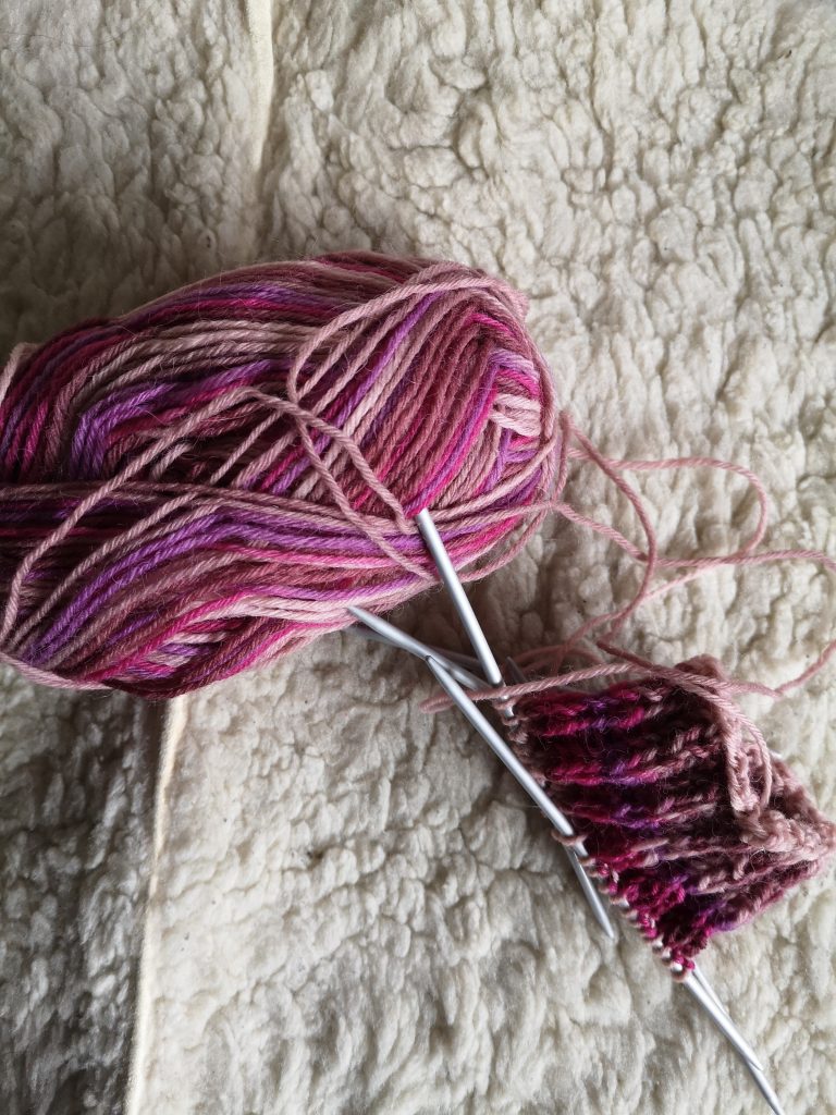 - Meine Tochter hat mich animiert, mal wieder zu stricken. Das soll mal eine Socke werden.