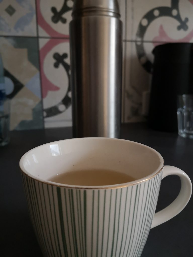 - Und Zu Hause gibt es frischen Ingwertee.